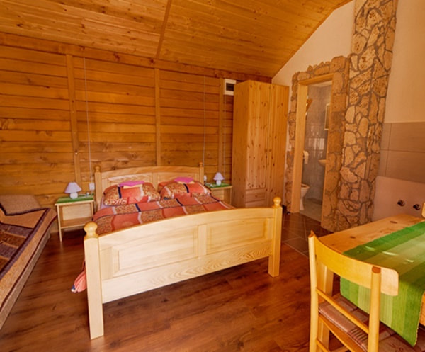 Parkettás padló és saját fürdőszoba (zuhanyzó, WC) tartozik. Műholdas TV is rendelkezésre áll. A vendégek rendelkezésére áll egy teljesen felszerelt, közös konyha.