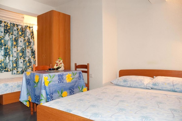 Kb. 35 m2-es apartmanjaink vannak, ezek 4 vagy 5 fős apartmanok, és minden nagyobb apartman tengerre néző erkéllyel rendelkezik, valamint kb. 20 m2-es stúdióapartmanjaink, ezek kisebb stúdióapartmanok 2 vagy 3 fős apartmanok, tengerre néző ablakokkal, a stúdióapartmanok bejáratánál pedig egy nagy, közös terasz található, ahonnan kilátás nyílik a strandra és az öbölre.